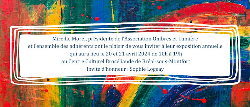 L’association « Atelier Ombres et Lumières », composée d’artistes locaux, présente plusieurs œuvres les 20 et 21 avril 2024 au centre culturel de Bréal-sous-Monfort.