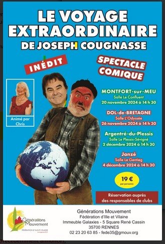 Certes un peu moins loin, cet autre voyage extraordinaire de Joseph Cougnasse, à Montfort-sur-Meu, le 20 novembre 2024 à 14 h 30.